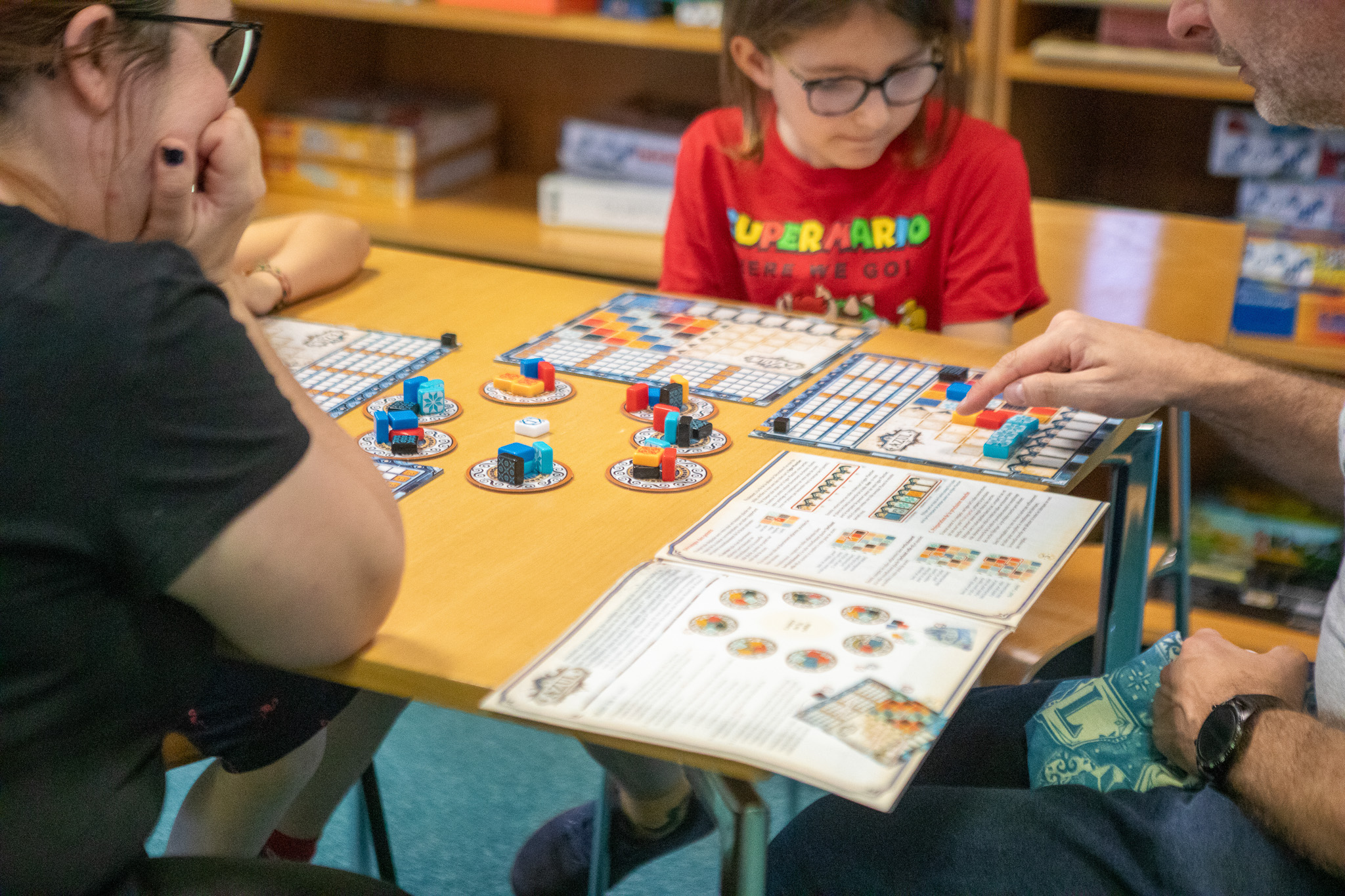 Un coin jeux est à disposition pour jouer sur place en famille ou entre amis ainsi qu’un espace atelier pour les activités de loisirs créatifs.