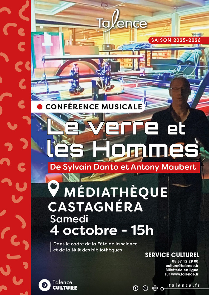 Matériau polyvalent et transformateur de ['Histoire, omniprésent dans notre quotidien, le verre n'en demeure pas moins mystérieux et méconnu. Issue de l'échange entre Sylvain Danto, chercheur à l'Université de Bordeaux, et le musicien Antony Maubert, « Le verre et les Hommes» nous invite à retracer à travers un voyage musical, visuel et poétique la grande épopée de ce matériau exceptionnel.
