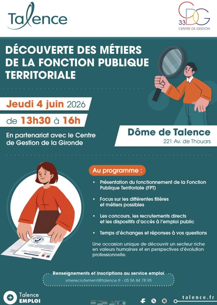 La Ville de Talence propose un temps d’information dédié à la découverte des métiers de la fonction publique territoriale.