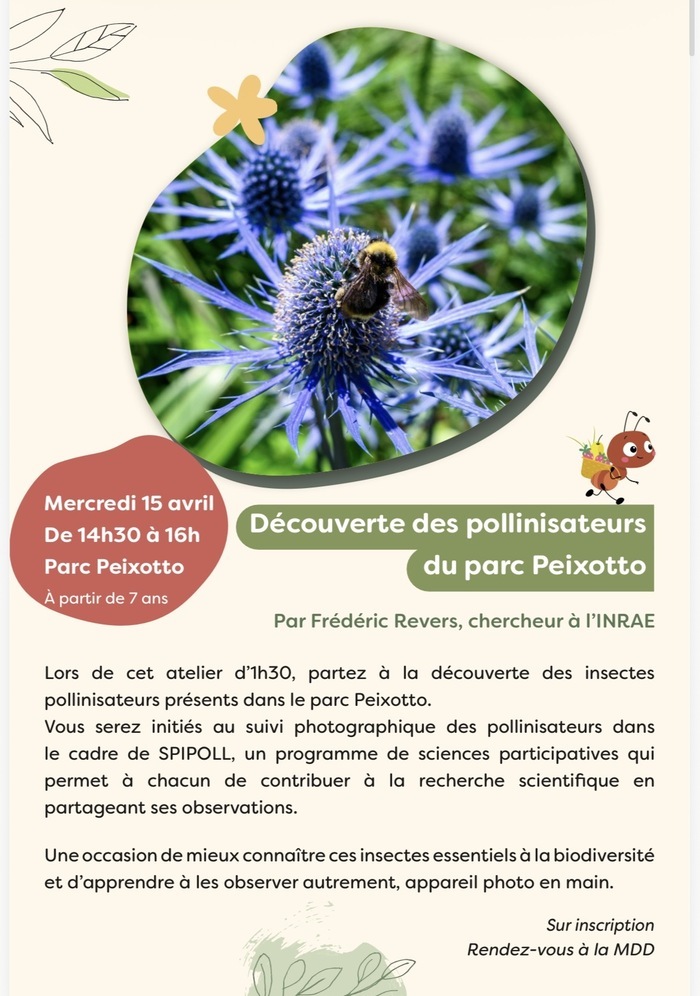 Partez à la rencontre des insectes pollinisateurs du parc Peixotto lors d’un atelier de découverte accessible à tous.