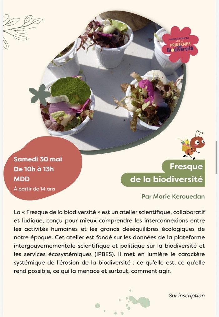 Dans le cadre du Printemps de la biodiversité, la Ville de Talence propose un atelier participatif : la Fresque de la biodiversité.