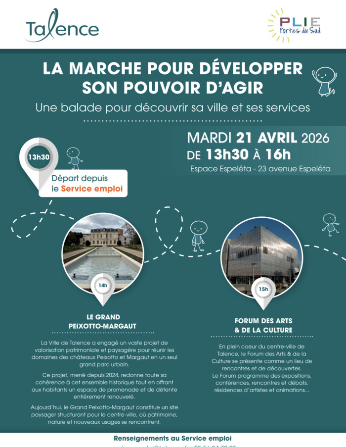 La Ville de Talence et le PLIE des Sources vous proposent une balade urbaine pour (re)découvrir votre ville, ses services et ses équipements.