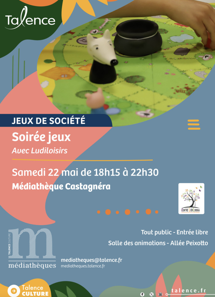 La médiathèque Castagnéra vous invite à une soirée dédiée aux jeux de société, animée par l’association Ludiloisirs.