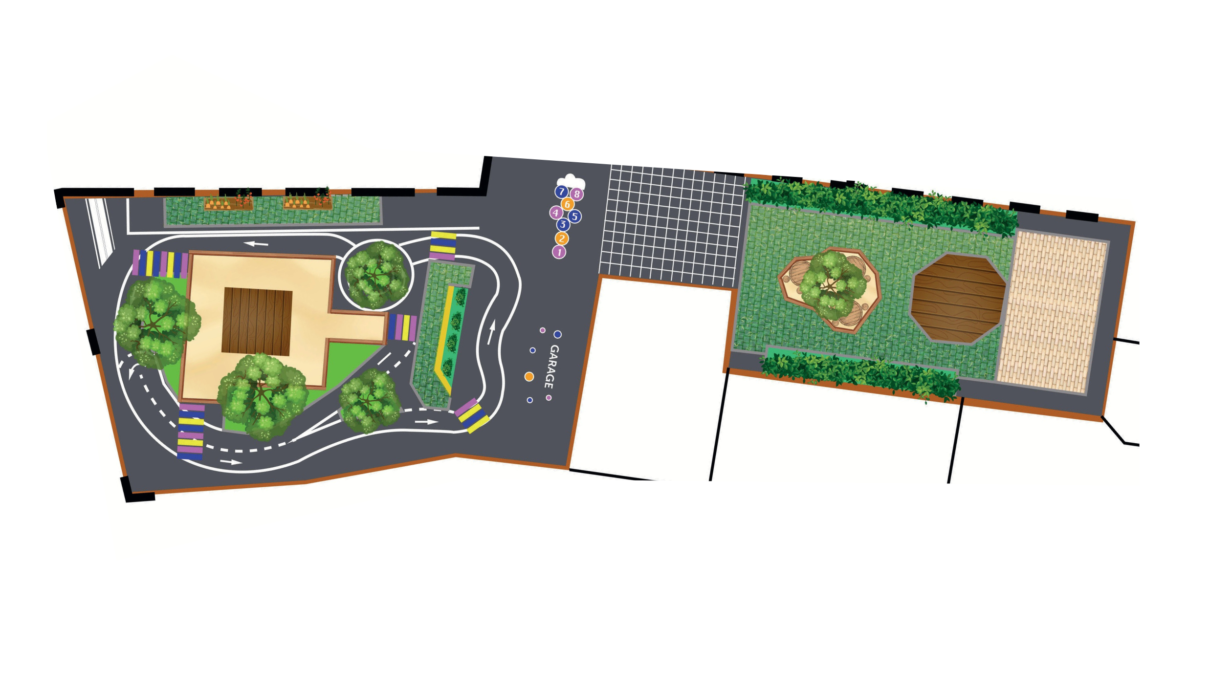 - le sol sera éclairci avec un enrobé gris,