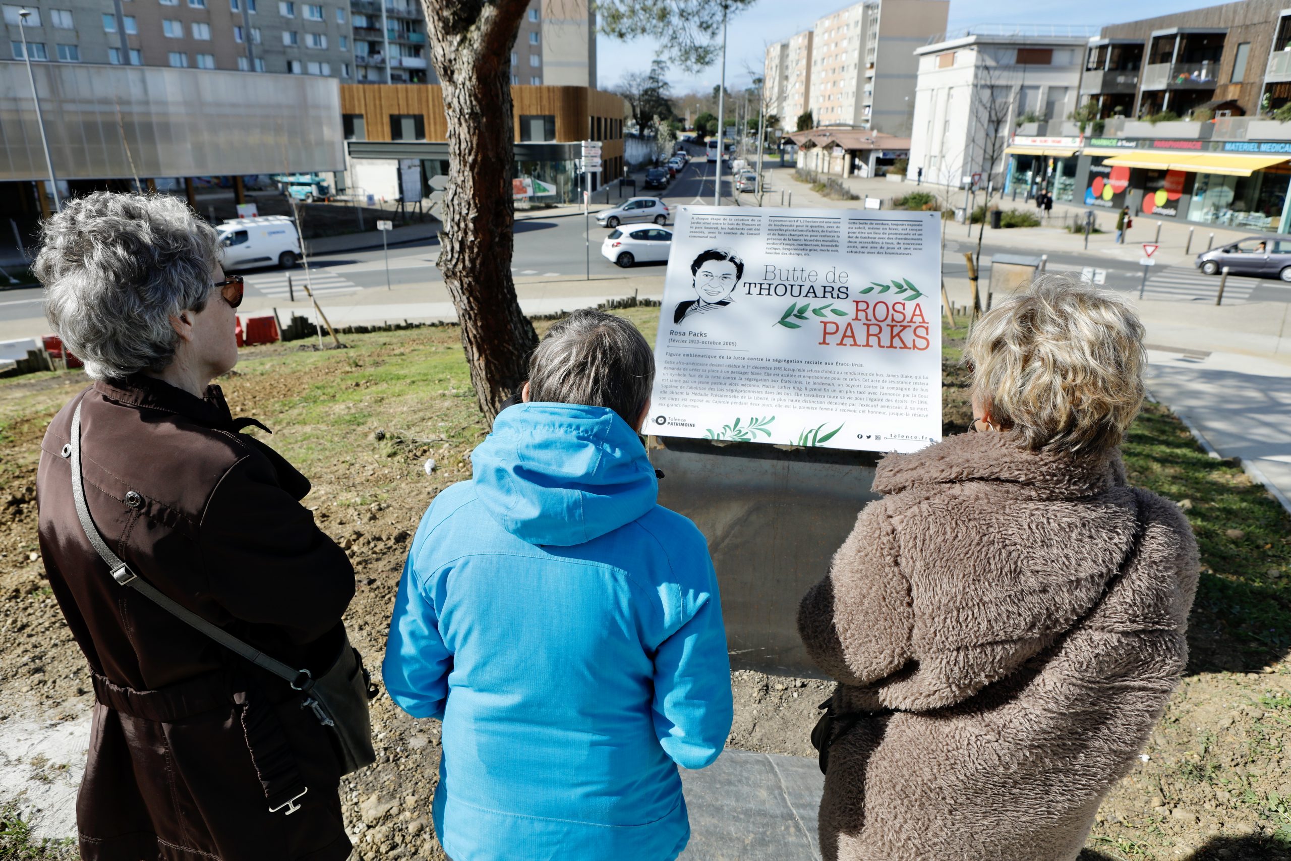 Cette butte, d’1,2 hectare d’espace vert partagé, a été réalisée pour et par les habitants pour en faire un lieu de rencontre et de biodiversité. En haut de la butte Rosa Parks du quartier de Thouars : une aire de jeux ainsi qu’une zone rafraîchie avec des brumisateurs (un système réalisé par le service des jardins de la Ville).