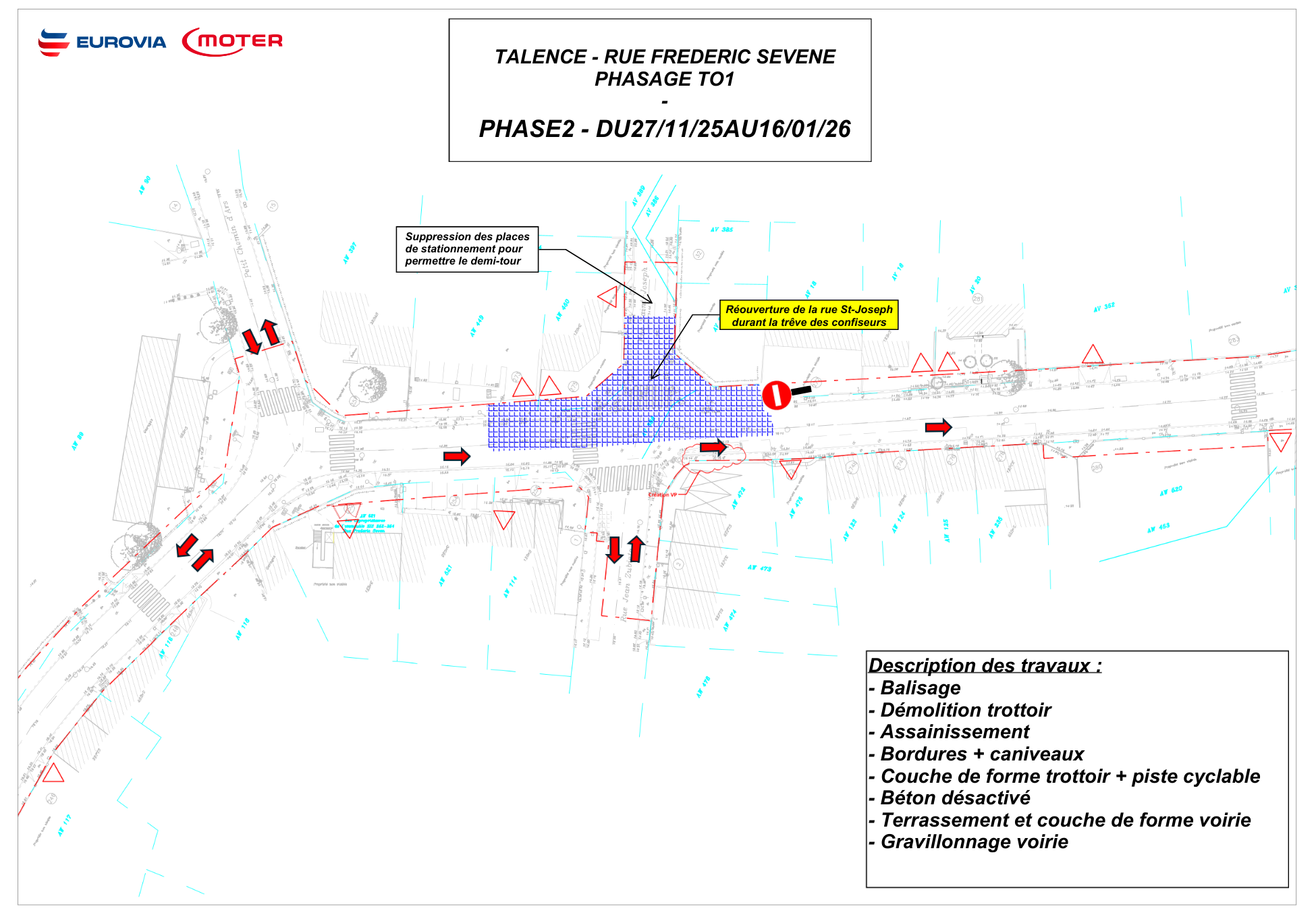Les travaux de requalification continuerons sur le croisement de la rue Frederic SEVENE angle rue Saint Joseph. (Les dates sont fournies à titre indicatives mais peuvent varier selon les aléas climatiques).