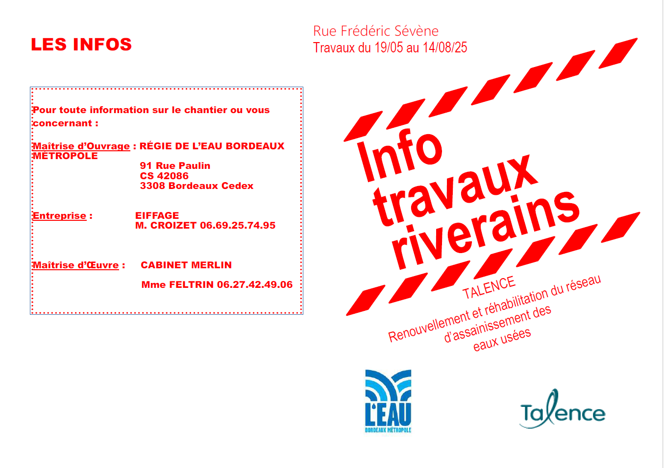 Un courrier a été distribué aux riverains vous pouvez le retrouver ci-dessous.