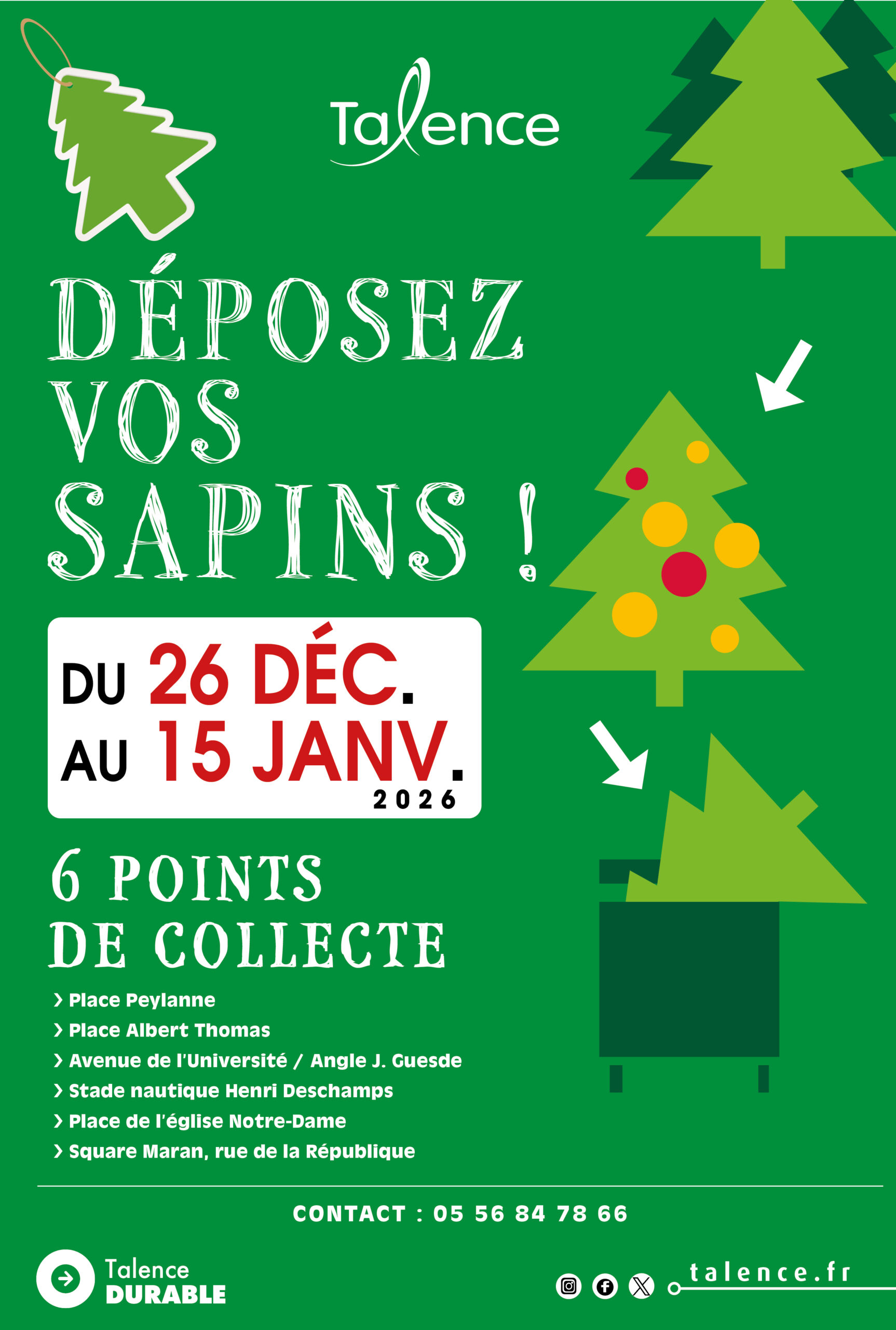 Du vendredi 26 décembre 2025 au jeudi 15 janvier 2026, 6 points de collecte sont à votre disposition pour jeter et recycler, vos sapins naturels débarrassés de leurs décorations de Noël.